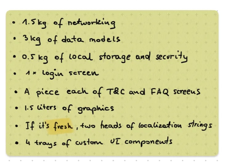 The problem I see lies entirely elsewhere. We want to prepare a specific dish, call it what you want: deliver value to the user, a feature, a user story. That is, to prepare SOMETHING using ingredients from our list, just a few or many, in various proportions, but SOMETHING that isn’t just an ingredient from the list itself.